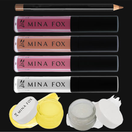 Collection: Mina Fox lip Kit. Lipstick, Lip Gloss, and Lip Pencil